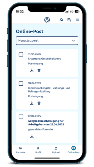 Briefe mit Unterlagen, die Sie im Original brauchen, erhalten Sie weiterhin per Briefpost. Dies gilt zum Beispiel für Dokumente, die im Original an einen Arzt weitergegeben werden müssen.