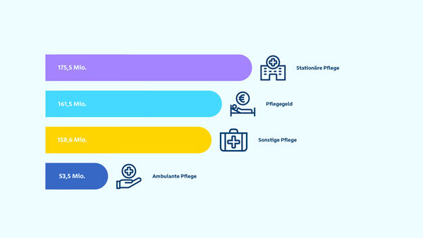 | - Sonstige Pflegeausgaben | 158,6 Mio. € | 172,6 Mio. € | -8,11 % |