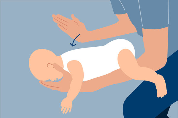„Beim Heimlich-Manöver wird die betroffene Person von hinten umfasst und Druck auf die Magengegend ruckartig ausgeübt. Für Kinder unter 12 Monaten ist dieser Druck viel zu hoch, schwere Verletzungen können die Folge sein“, so Böttiger. Eine schonendere, aber dennoch effektive Alternative: Das Kind in Bauchlage mit dem Kopf nach unten auf den Unterarm legen und den Kopf mit der Hand am Kiefer stützen. Dabei darauf achten, nicht auf den Hals zu drücken. „Dann gibt man dem Baby einige feste Schläge mit der flachen Hand auf die Mitte des Rückens zwischen die Schulterblätter, um den Fremdkörper zu lösen.“