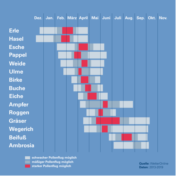Um eine genaue Diagnose zu erhalten, sollten Sie auf jeden Fall einen Allergologen aufsuchen. Dies kann ein Hautarzt, Hals-Nasen-Ohren-Arzt, Lungenfacharzt, Internist oder Kinderarzt sein, der eine Zusatzausbildung zum Allergologen absolviert hat. Schon durch ein ausführliches Gespräch kann der Arzt meist sicher feststellen, ob es sich um Heuschnupfen handelt, zum Beispiel indem er fragt, wann und wo die Symptome auftreten oder ob in der Familie Allergien vorkommen. Aufwendiger ist die genaue Bestimmung der Pflanzenpollen, die den Heuschnupfen auslösen. Erste Hinweise liefert ein Blick auf den Pollenflugkalender, der zeigt, wann welche Pflanze ihre Pollen freisetzt.