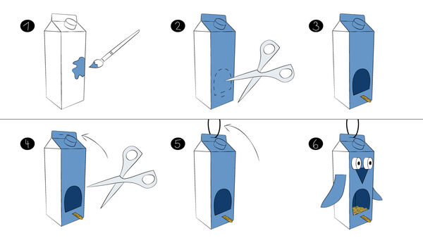 Egal ob Milch- oder Saftkarton: Leere Tetrapacks fallen in fast jedem Haushalt an. Damit sie recycelt werden können, sollte man sie unbedingt in der gelben Tonne bzw. dem gelben Sack entsorgen. Oder – wir finden, das ist eine viel schönere Alternative – ein Vogelhäuschen daraus basteln. Und dann die kleinen Piepmätze aus nächster Nähe beobachten. So kann man die Kinder beschäftigen und ihnen die Natur näherbringen.