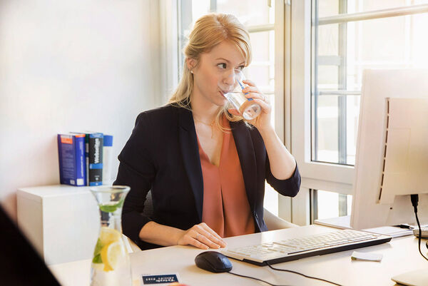 Und wie viel Wasser am Tag ist nun die richtige Menge? Das Bundesministerium für Ernährung empfiehlt Erwachsenen grundsätzlich, pro Tag 1,5 Liter zu trinken. Wasser gilt dabei als idealer Durstlöscher, egal ob Leitungs- oder Mineralwasser. Aber auch ungesüßte Kräuter- und Früchtetees sowie Saftschorlen (ein Teil Saft, drei Teile Wasser) zählen zu den 1,5 Litern. Kaffee, schwarzer und grüner Tee – in Maßen und ohne Zucker – werden ebenfalls eingerechnet.