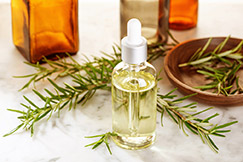 Wie andere ätherische Öle kann auch Rosmarinöl Kontaktallergien auslösen und sollte daher stets verdünnt aufgetragen werden. Mischen Sie es am besten mit einem anderen Öl – zum Beispiel Olive oder Kokos – oder verwenden Sie eine Rosmarinlotion. Testen Sie das Öl oder die Lotion in jedem Fall vorher auf einer kleinen Hautstelle, um eine allergische Reaktion auszuschließen.