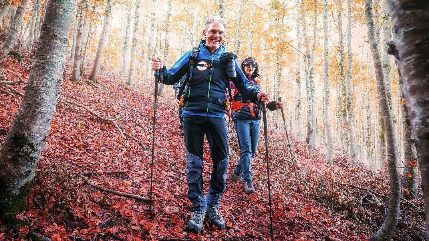 Trekkingstöcke vermindern den Druck auf das Kniegelenk beim Bergabgehen um rund 36 Prozent. Beim Bergabgehen lastet mit jedem Schritt ein Vielfaches unseres Körpergewichts auf den Kniegelenken. Wird der Druck größer, kann das zum Abrieb des Knorpels und zu Arthrose führen. Schwere Rucksäcke verstärken den Effekt. 30 Prozent der Bergsteiger klagen über Schmerzen beim Gehen. Orthopäden empfehlen beim Bergabgehen den „Kellnerschritt“. Dabei zeigen die Fußspitzen leicht nach außen, die Kniescheibe und das Kniegelenk werden so geschont. Springen oder Rennen sind bergab tabu. Kleine Schritte und das Anspannen der Beinmuskeln dämpfen die Stöße. Bei richtiger Anwendung entlasten Trekkingstöcke die Kniegelenke um bis zu 36 Prozent. Lassen Sie sich den richtigen Einsatz beispielsweise von Experten vom