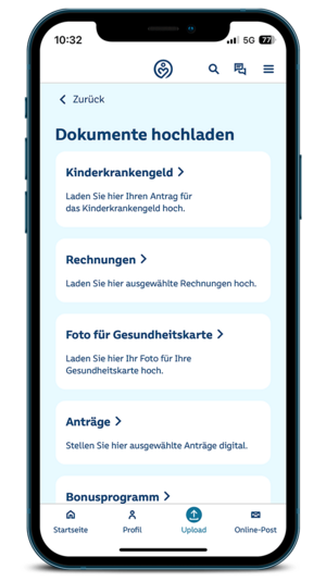 Persönliche Dokumente wie Renten- oder Studienbescheinigungen, Geburtsurkunden oder auch das Zahnbonusheft können Sie ebenfalls einfach per Upload bei uns einreichen.