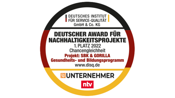 Mit unserem Partner Gorilla erhalten wir den "Deutschen Award für Nachhaltigkeitsprojekte 2022" in der Kategorie „Chancengleichheit“.