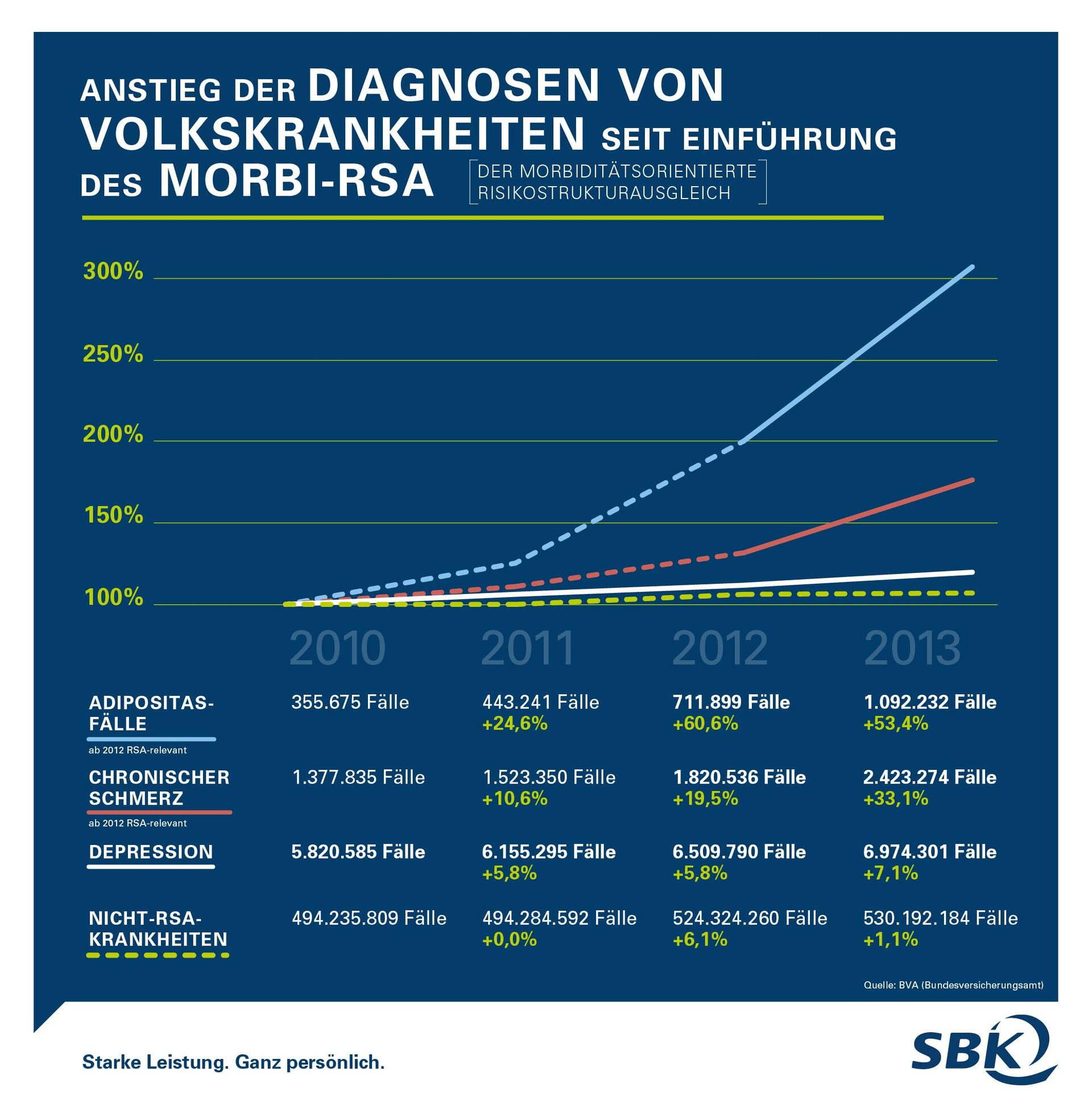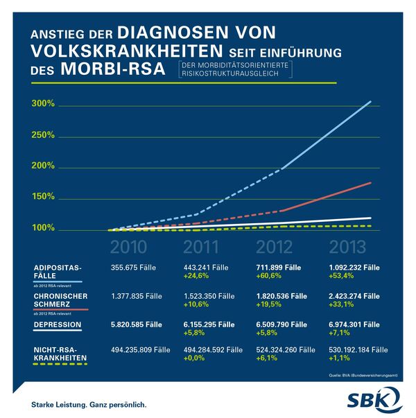 Durch die starke Gewichtung der Häufigkeit im aktuellen System werden sogenannte „Volkskrankheiten“ im Morbi-RSA finanziell bevorzugt, die zwar häufig auftreten, aber nicht übermäßig kostenintensiv sind und einer Prävention zugänglich wären. Sehr kostspielige Krankheiten, die nicht über Prävention verhindert werden können, bleiben jedoch außen vor. Aus Sicht der SBK muss das Ziel des Morbi-RSA eine gute Mischung aus seltenen, teuren und häufig auftretenden, chronischen Krankheiten sein. Denn mehr Verteilungsgerechtigkeit sorgt für einen fairen Kassenwettbewerb – und davon profitieren letztendlich die Versicherten.