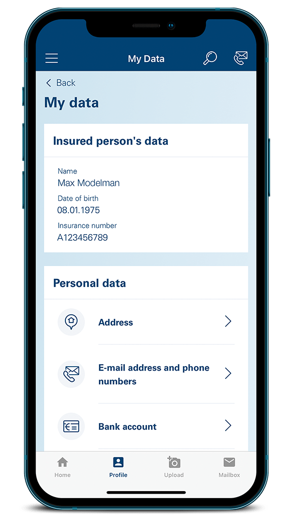 Once your account is activated, you can easily log in with your insurance number and the password you have chosen. You will then have access to selected online services – for example, you can easily change your personal data online or submit applications directly in the app.